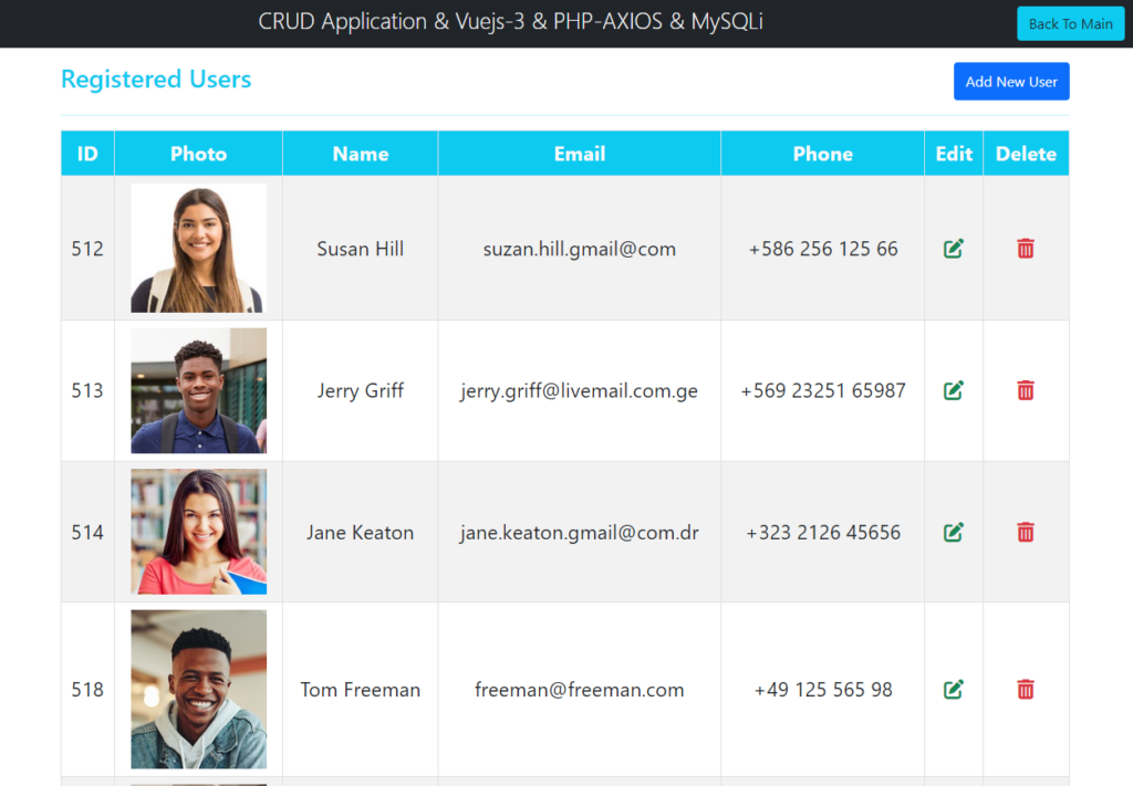 A responsive and interactive crud web application made using Vuejs3 and Bootstrap 5. HTML-CSS- Javascript – Vuejs3 – Axios -PHP mySQL